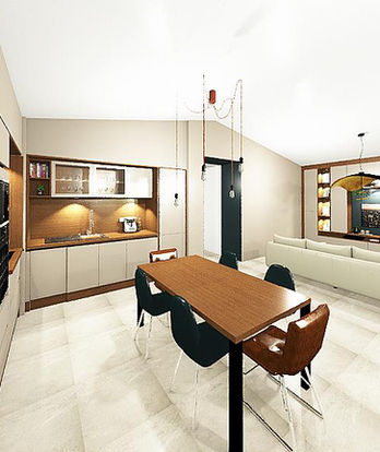 Pour ce faire, j’ai conçu une cuisine sur mesure et un ensemble meuble TV-bibliothèque, en mettant l’accent sur l'esthétique et la fonctionnalité. J’ai choisi les couleurs et les matériaux avec soin pour assurer une harmonie visuelle optimale.